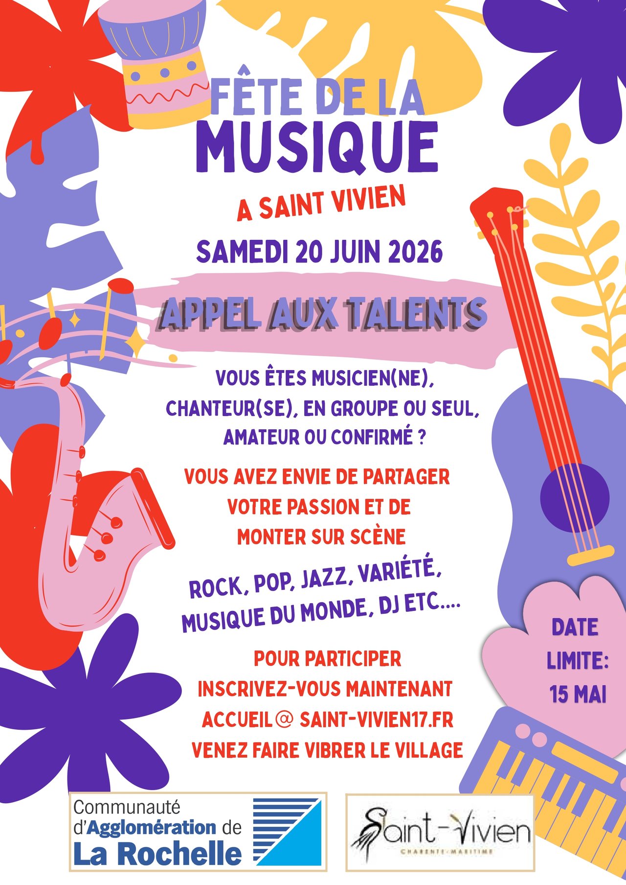 Inscrivez-vous dès maintenant sur accueil@saint-vivien17.fr