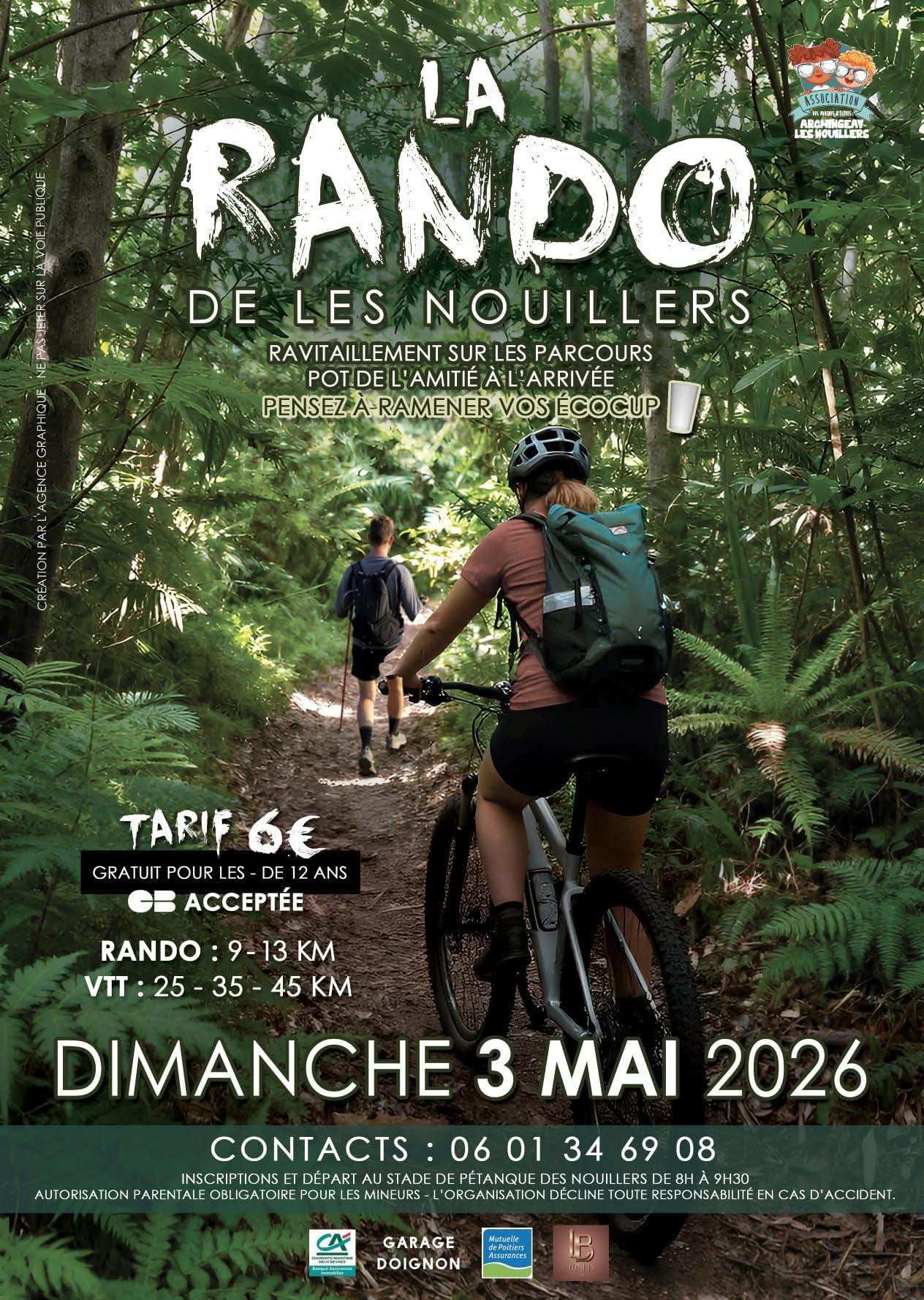 RANDO VTT PEDESTRE - 3 Mai 2026 à Les Nouillers, organisée par l'APE Archingeay-Les Nouillers